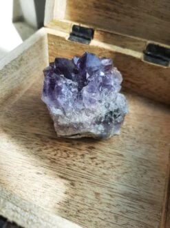 De edelsteen Amethist is familie van de bergkristal en bevordert de spirituele helderheid, het besef van spiritualiteit en de erkenning van de geestelijke werkelijkheid. Amethist geeft ons rechtvaardigheidsgevoel en een scherp oordelend vermogen en schept daarmee eerlijkheid en oprechtheid. Goed voor conflictbeheersing, acceptatie en innerlijke vrede. Amethist bevordert de spirituele groei en geeft inzichten.