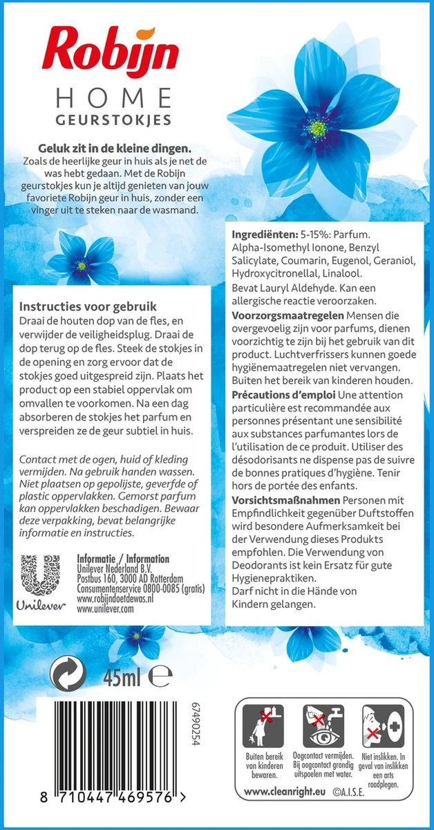 Geluk zit in de kleine dingen. Zoals de heerlijke geur in huis als je net de was hebt gedaan. Robijn Home Geurstokjes met de frisse lakengeur van Morgenfris verspreiden het parfum subtiel in huis.