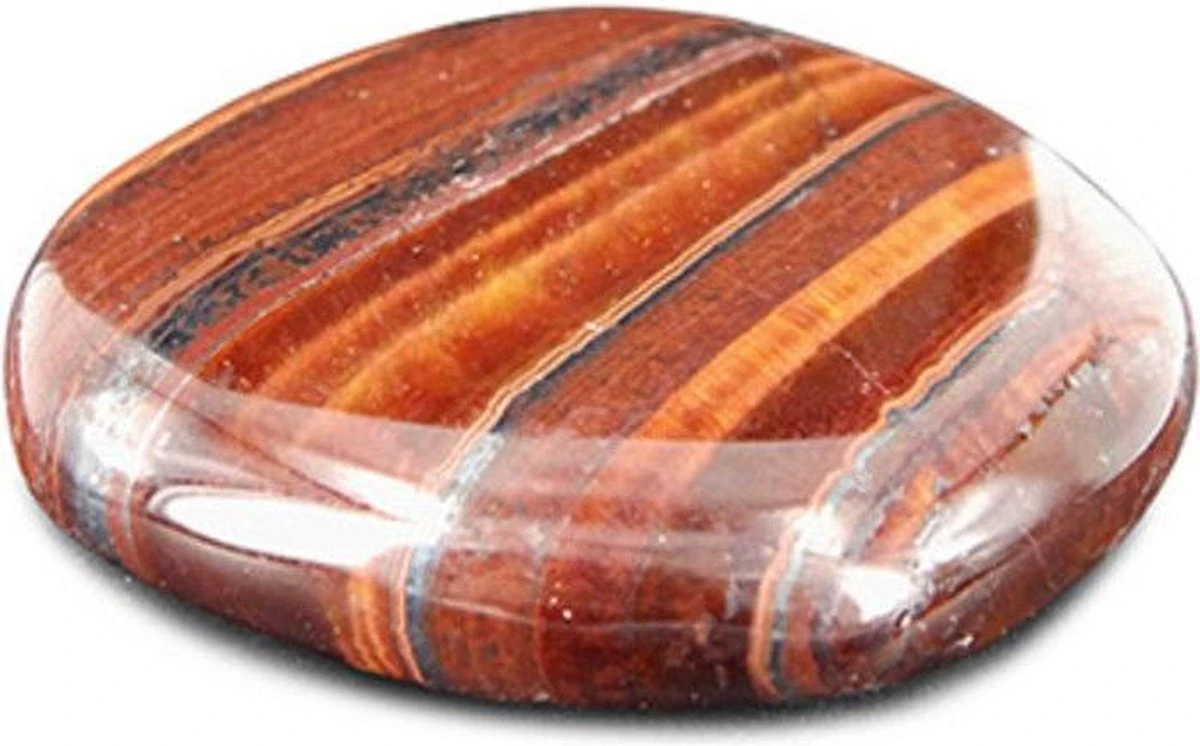 Edelsteen zaksteen / oplegsteen van Kattenoog (rode Tijgeroog). Afmeting ca. 3 tot 5 cm.