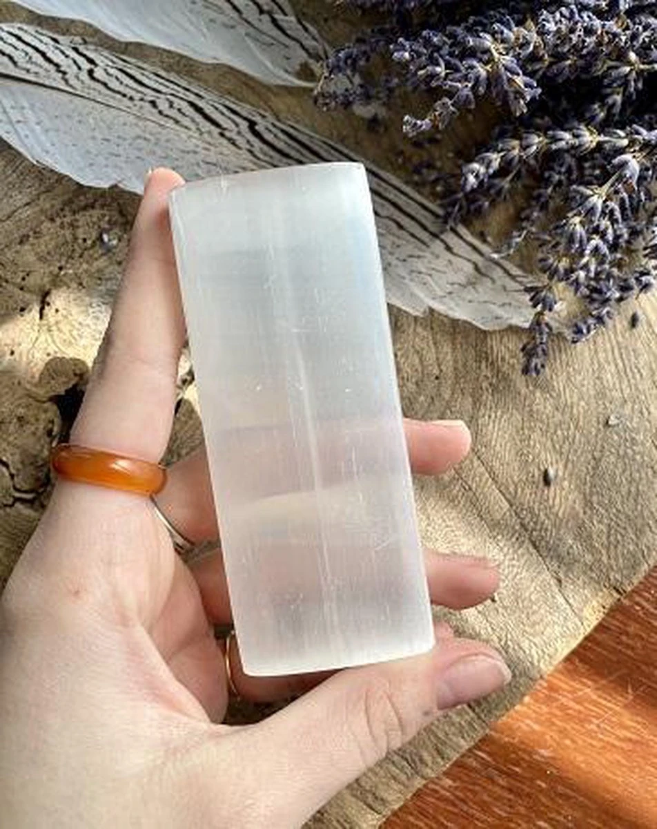 Seleniet is een hemelse steen. Seleniet is een spirituele steen die meditatie en contact met engelen vergemakkelijkt. Geeft inzicht en werkt beschermend. Geeft daarbij balans, rust en vrede in lichaam en geest. Seleniet helpt u bij klachten van de ruggengraat en epilepsie. Heeft een positieve werking op borstvoeding. Seleniet geeft houvast en controle. De steen heeft fysiek een positieve werking op de ruggengraat, de hersenen en versterkt weefsel. Seleniet heeft een bevorderende werking op de vruchtbaarheid en borstvoeding. Hij maakt je jong, vitaal en vrolijk en versterkt de intuïtie. Seleniet helpt tegen hyperactiviteit en gespannenheid. Hij werkt pijnstillend, ook bij voorweeën. Seleniet kan een heilzame werking hebben op epilepsie, oedeemvorming en het effect van vrije radicalen. Helpt bij hormoonschommelingen en geprikkeldheid. Seleniet helpt je om je af te schermen tegen negatieve energie en emoties van binnen en buitenaf.